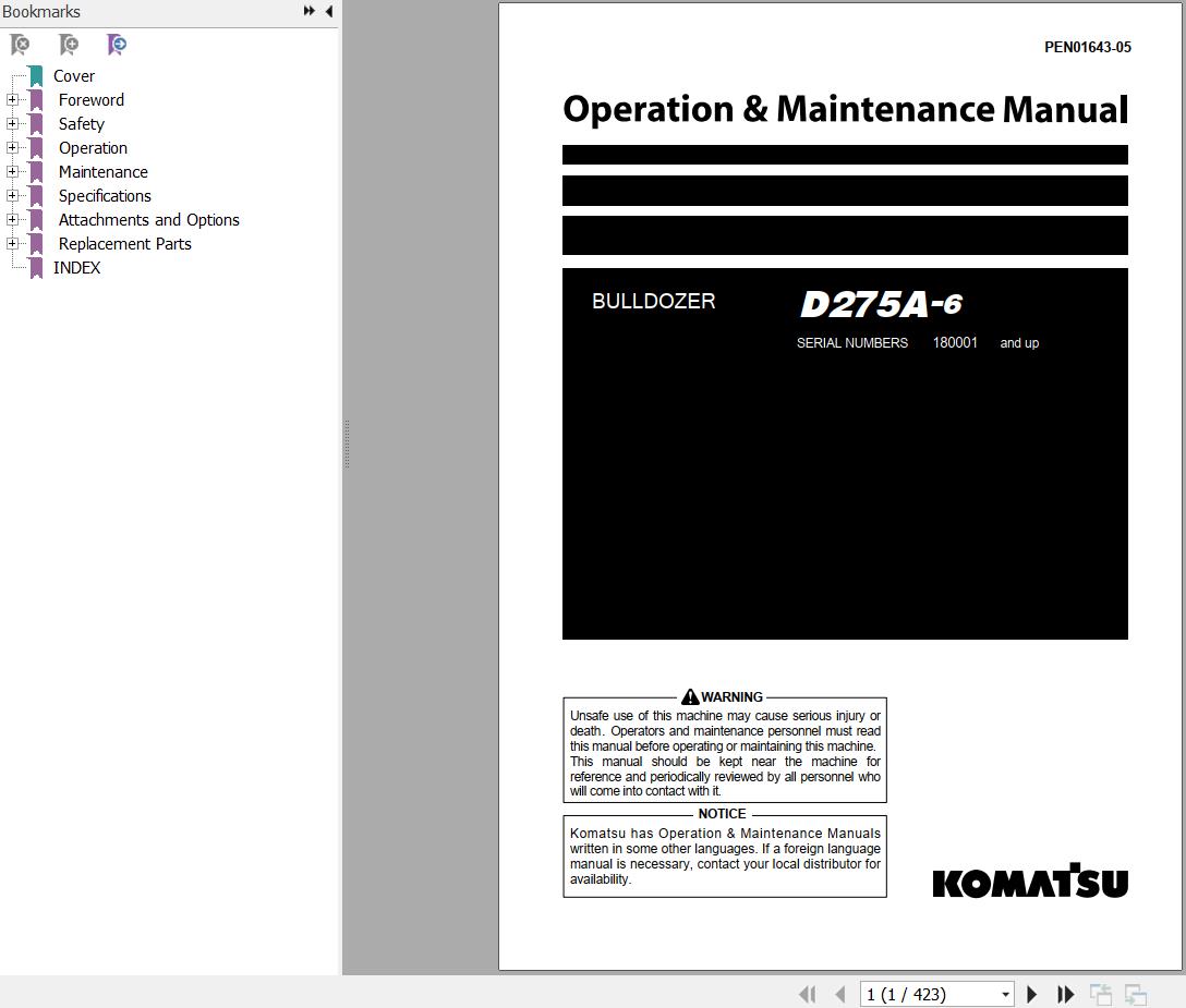 Komatsu D275A-6 Operation & Maintenance Manual PEN01643-05