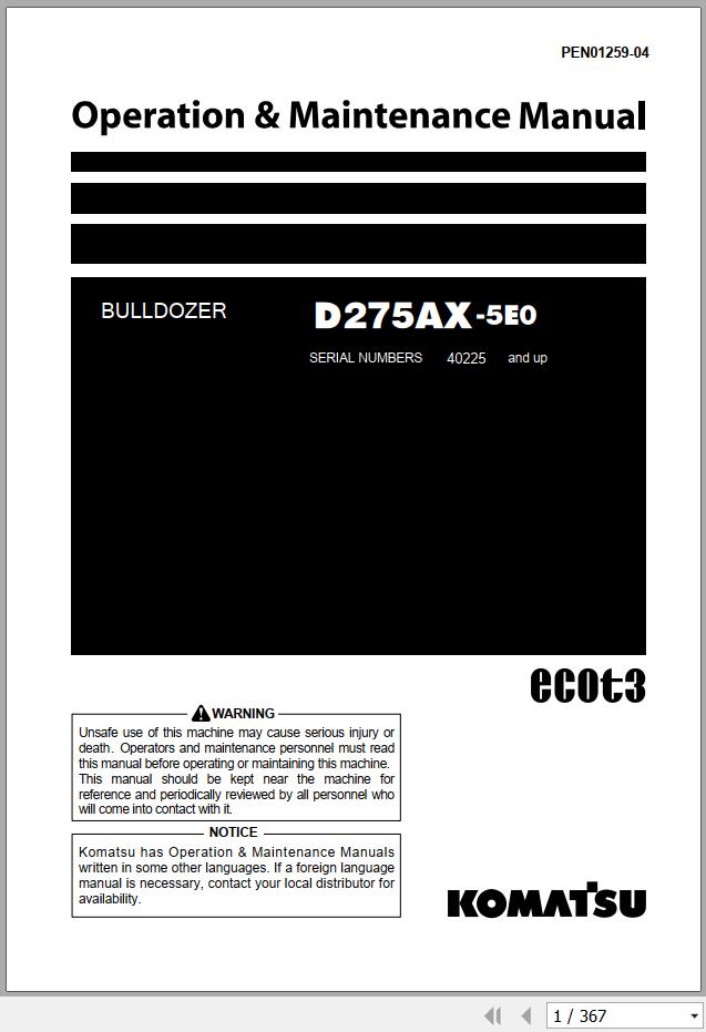 Komatsu D275AX-5E0 Operation & Maintenance Manual PEN01259-04