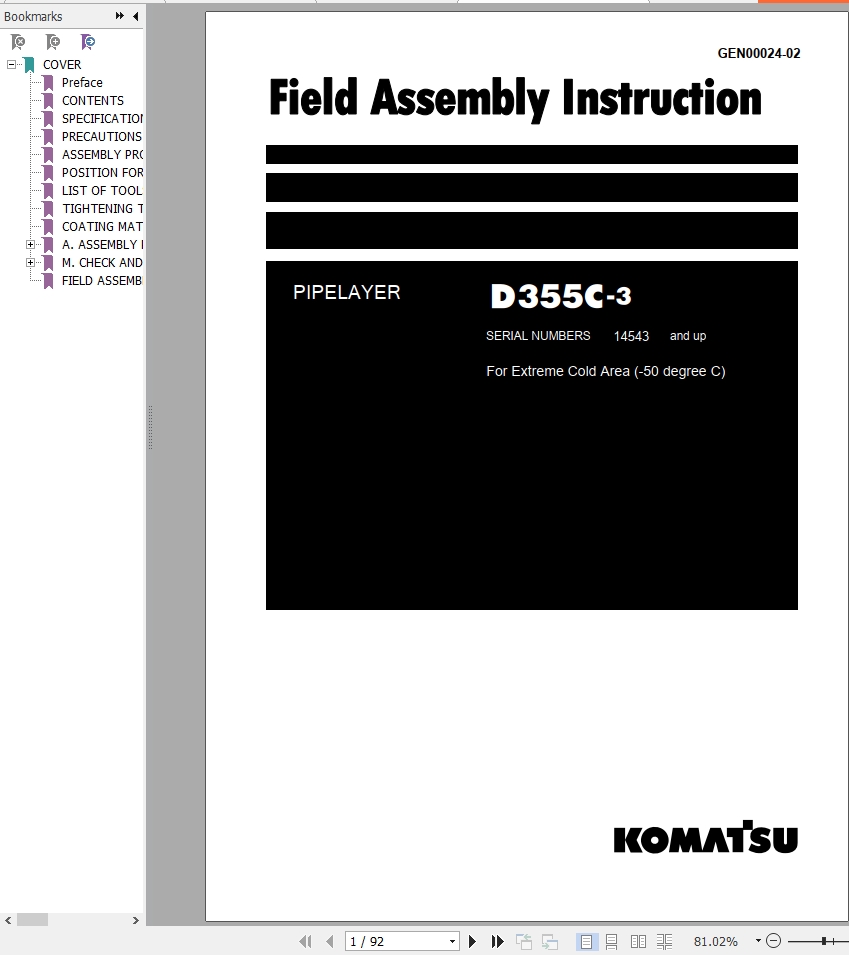 Komatsu D355C-3 Field Assembly Instruction GEN00024-02