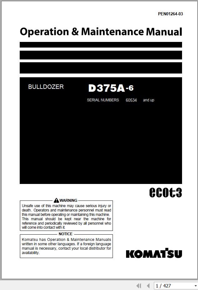 Komatsu D375A-6 Operation & Maintenance Manual PEN01264-03