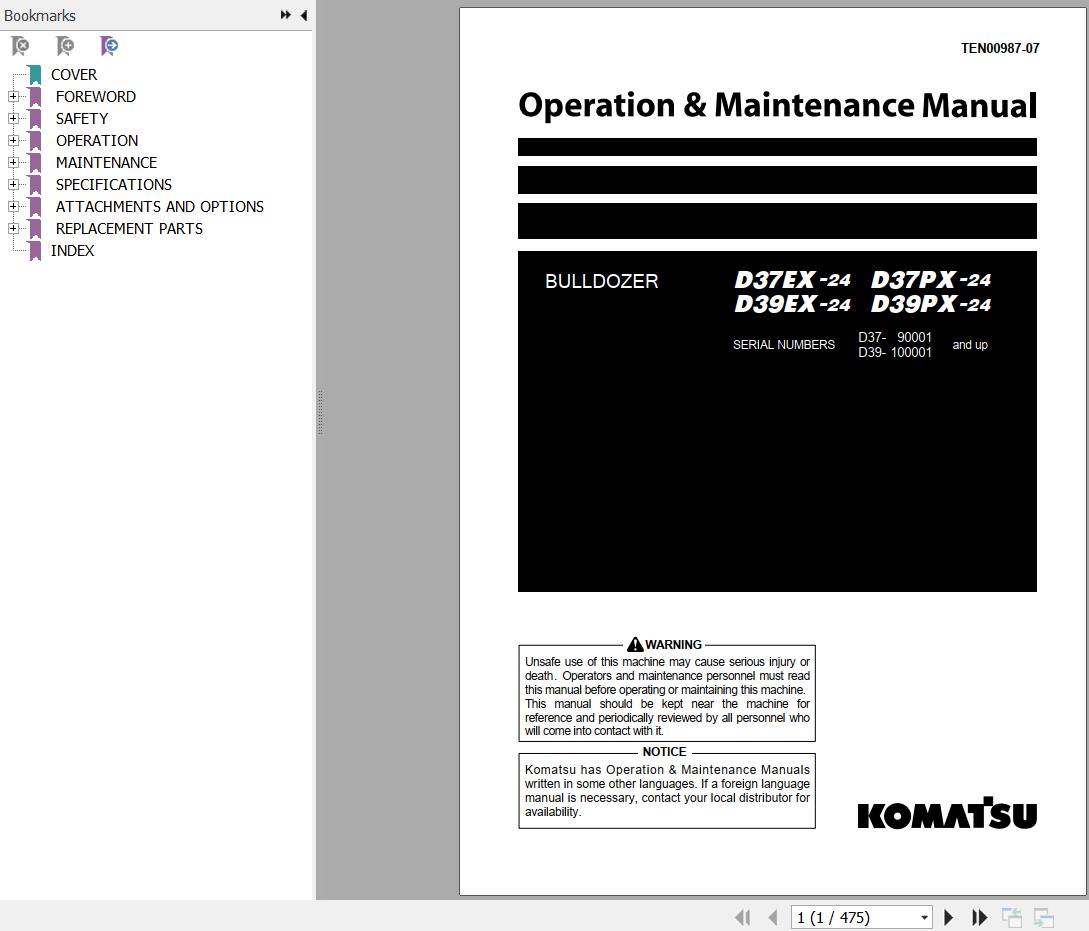 Komatsu D37EX-24 to D39PX-24 Operation & Maintenance Manual TEN00987-07