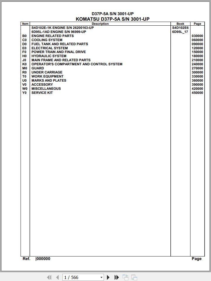 The Bookmarks of Komatsu D37P-5A 3001 Up Spare Parts Catalog: