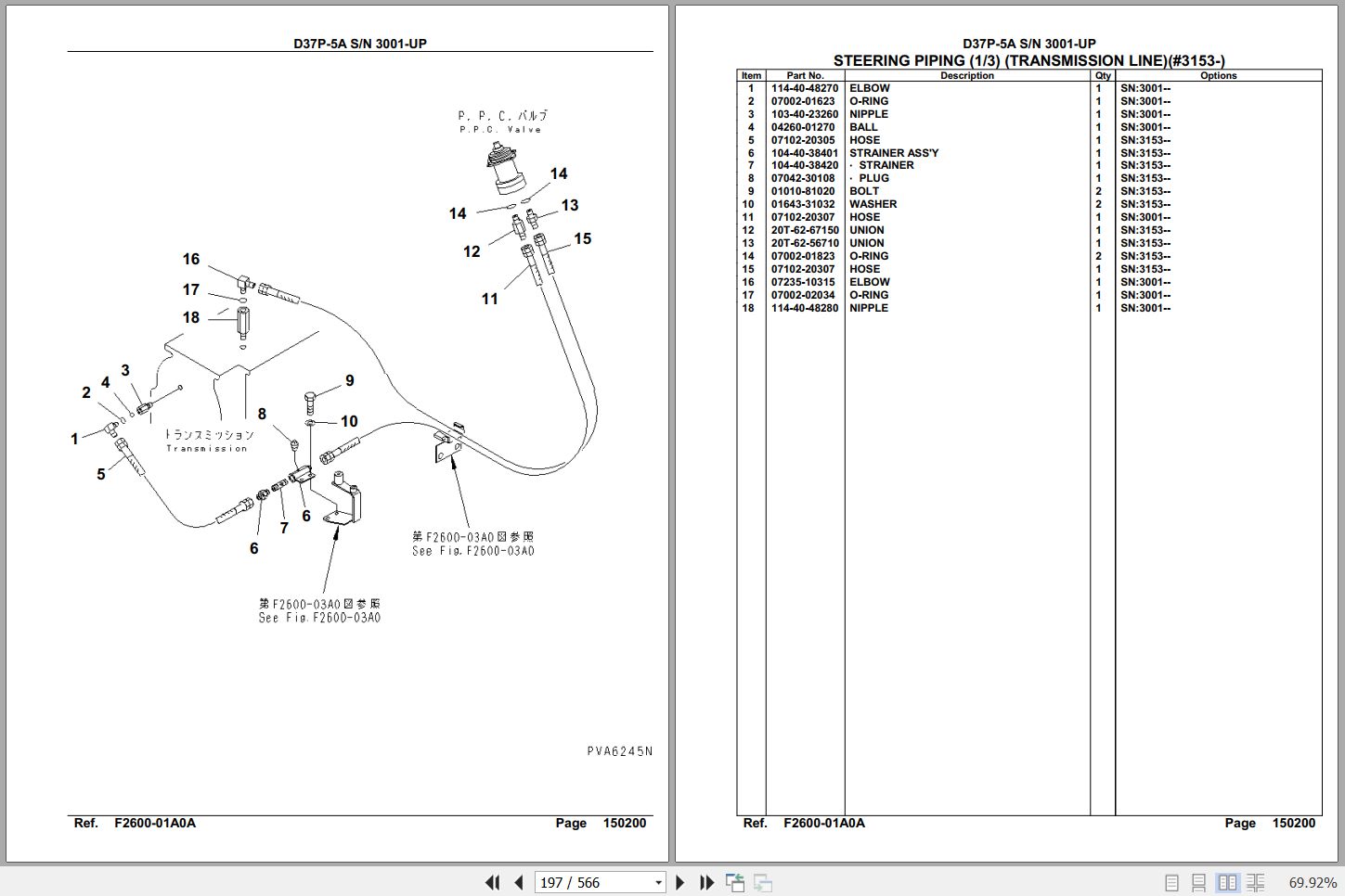 Komatsu D37P-5A 3001 Up Spare Parts Catalog