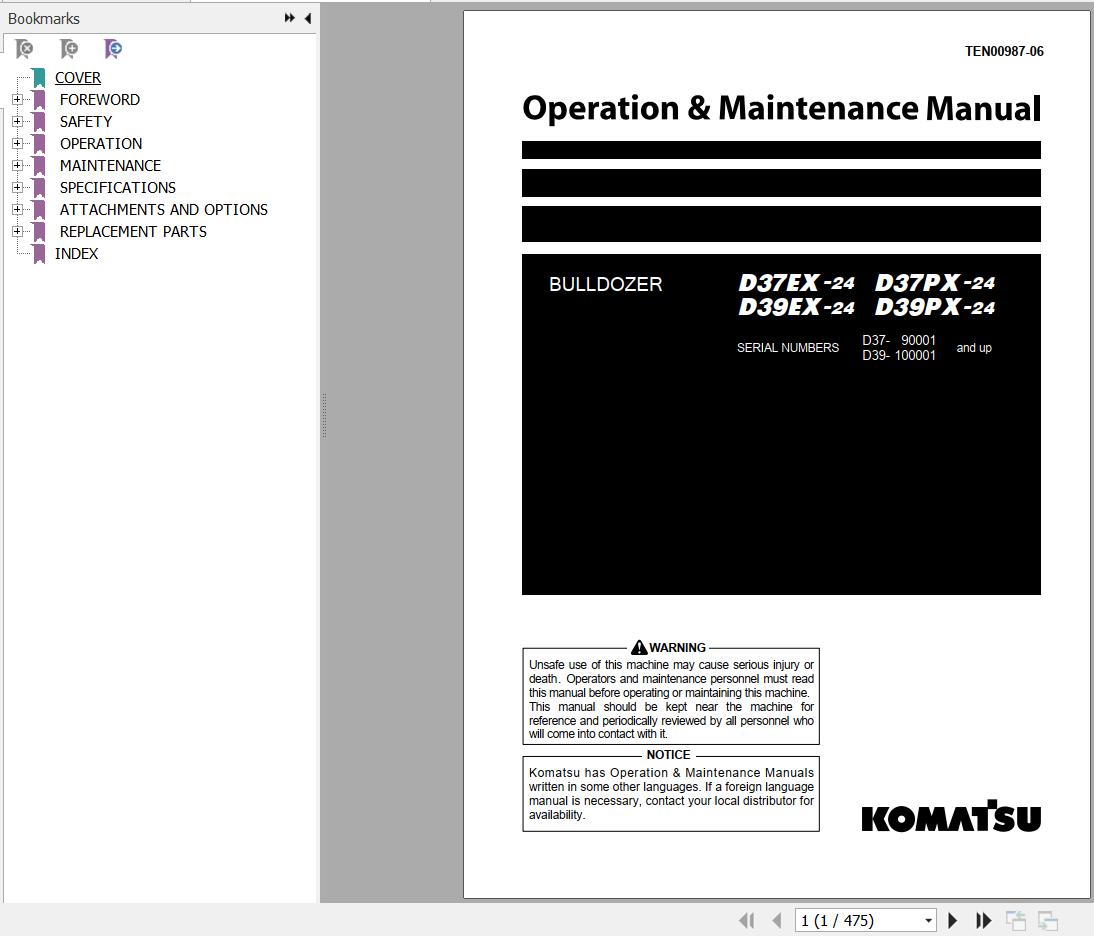 Komatsu D37PX-24 to D39PX-24 Operation & Maintenance Manual TEN00987-06