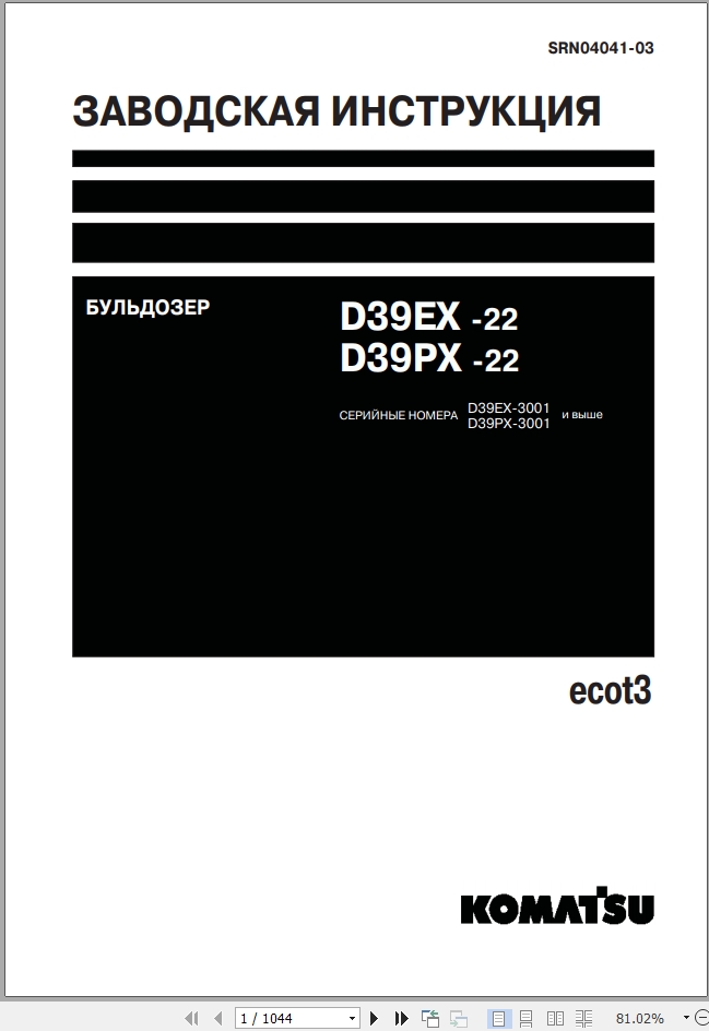Komatsu D39EX-22 D39PX-22 Shop Manual SRN04041-03
