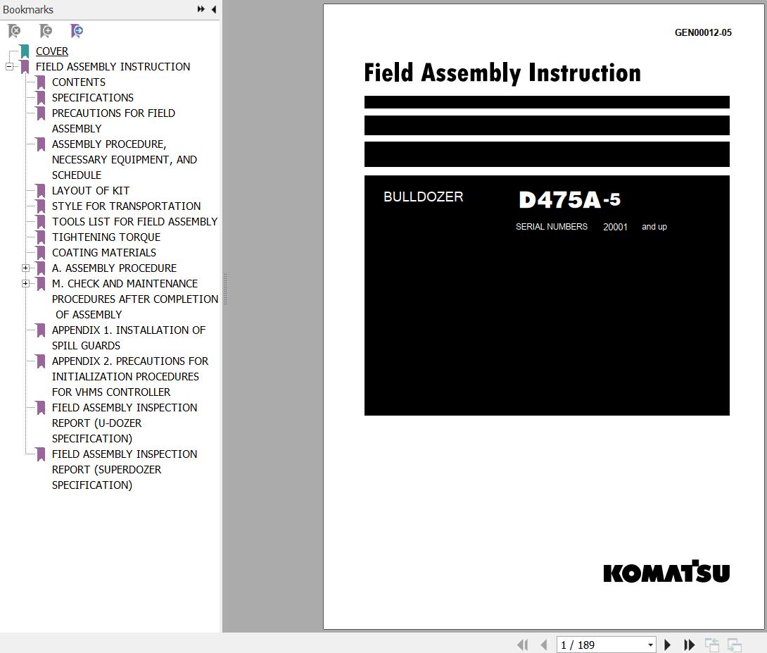 Komatsu D475A-5 Field Assembly Manual GEN00012-05