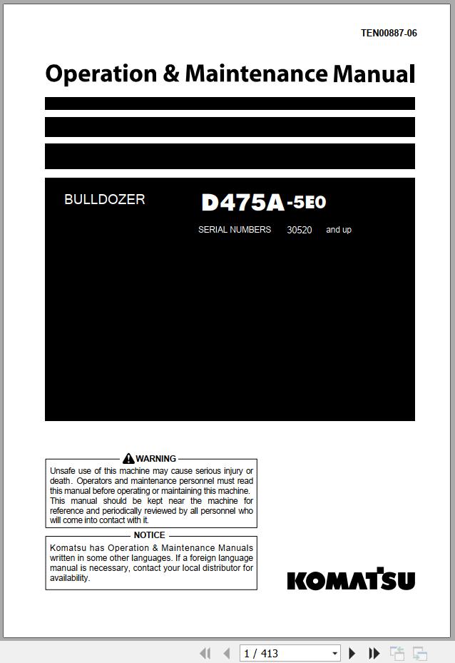 Komatsu D475A-5E0 Operation & Maintenance Manual TEN00887-06
