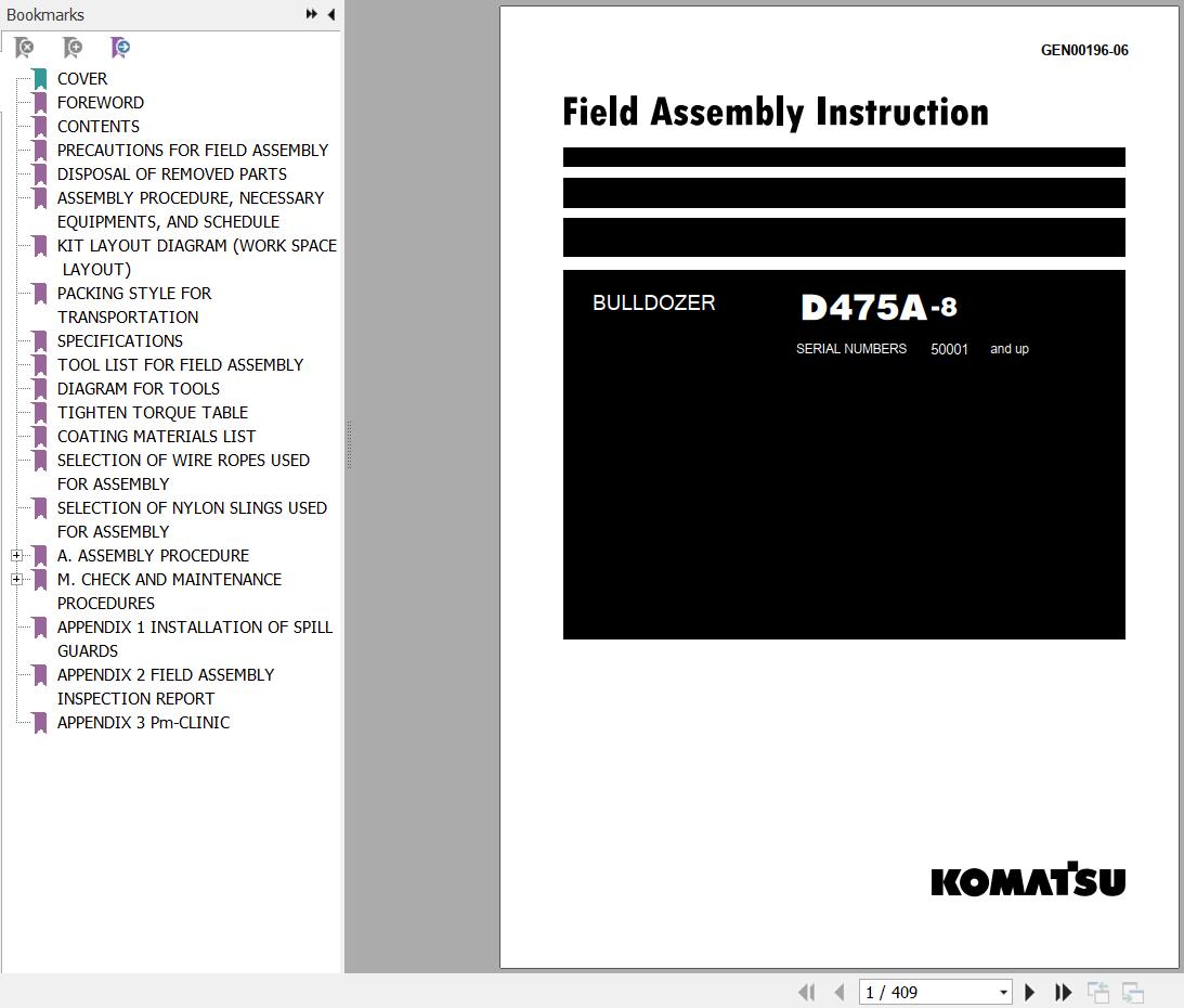 Komatsu D475A-8 Field Assembly Manual GEN00196-06