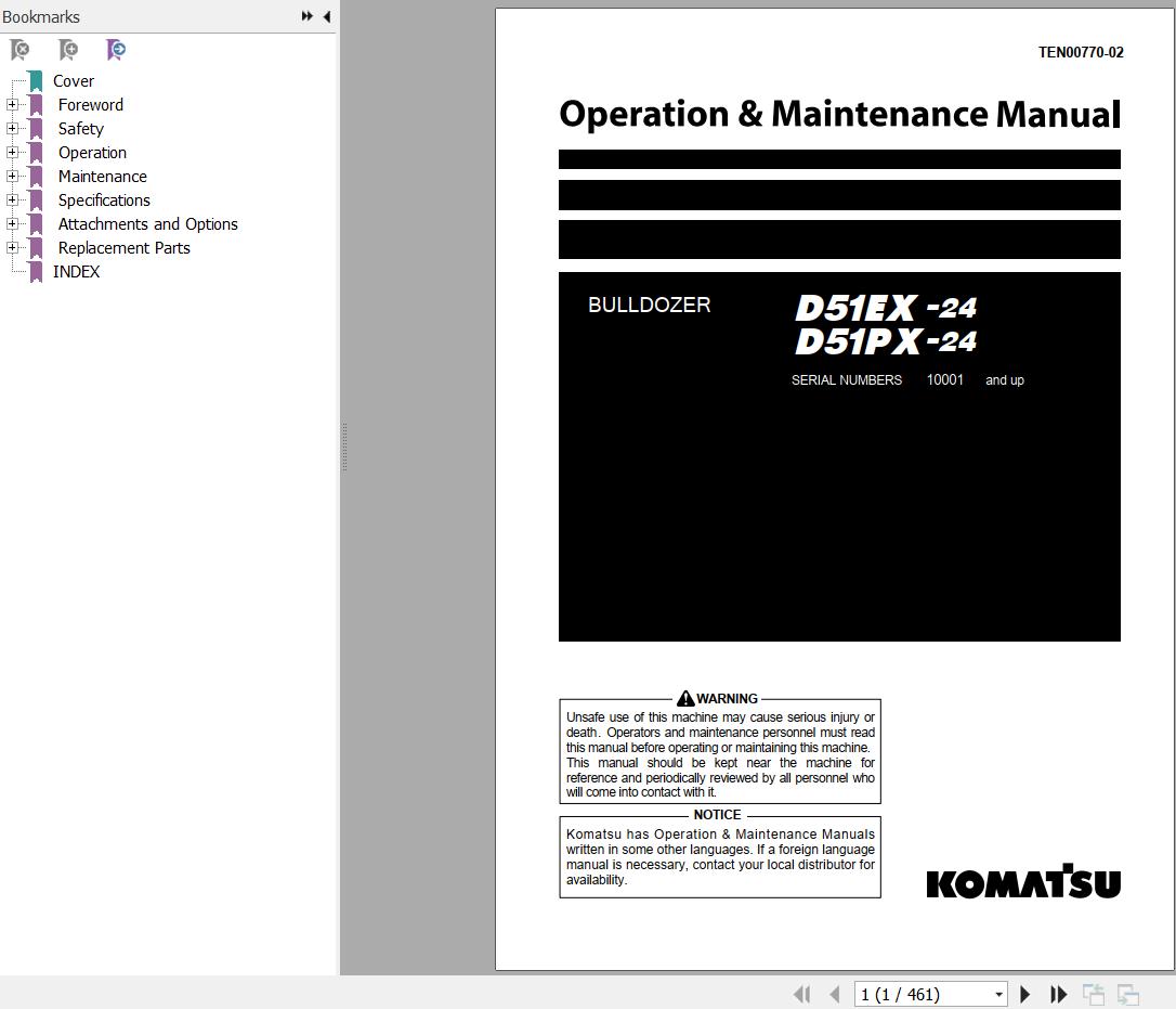 Komatsu D51EX-24 D51PX-24 Operation & Maintenance Manual TEN00770-02