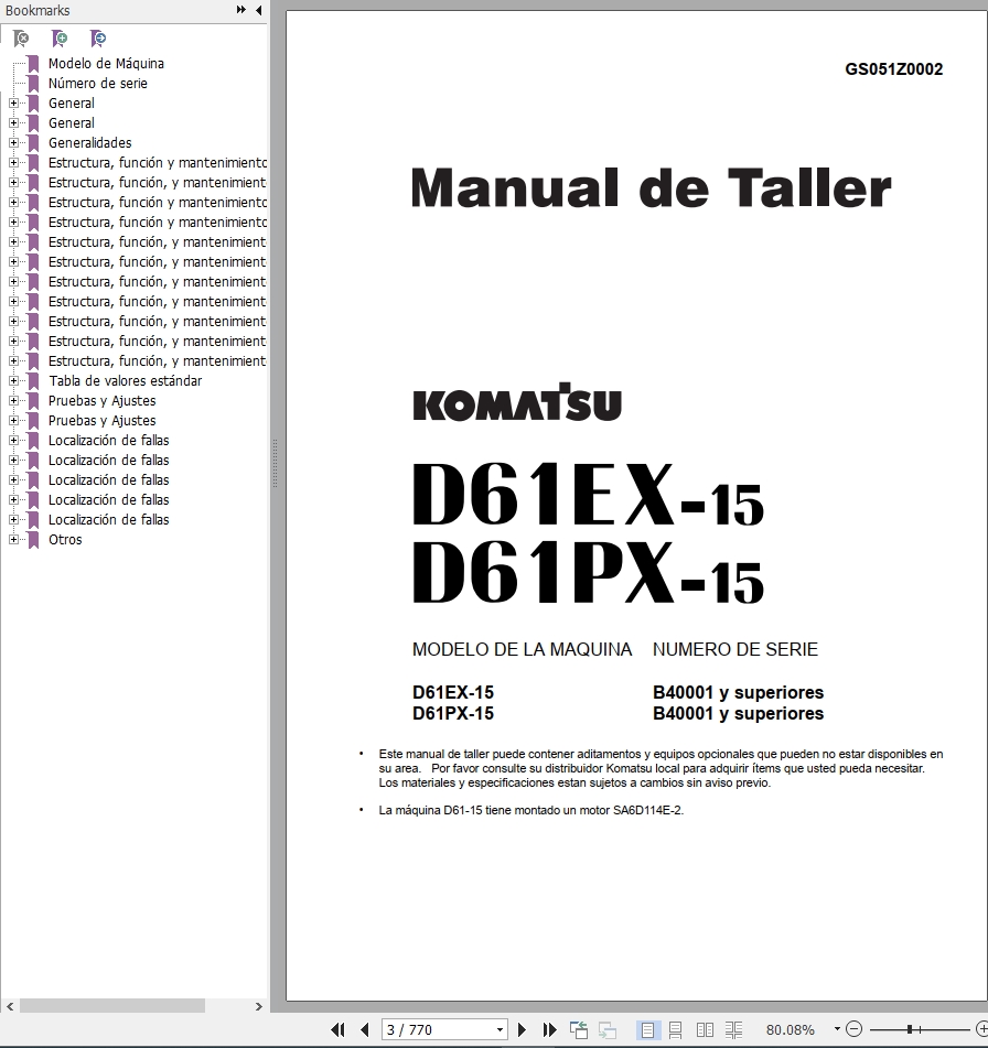 Komatsu D61EX-15 D61PX-15 Shop Manual GS051Z0002