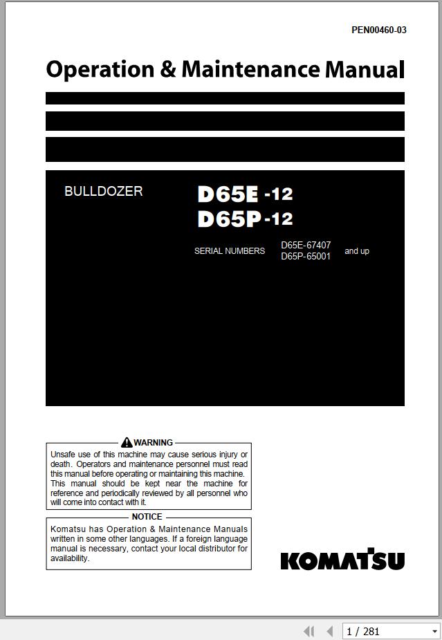 Komatsu D65E-12 D65P-12 Operation & Maintenance Manual PEN00460-03