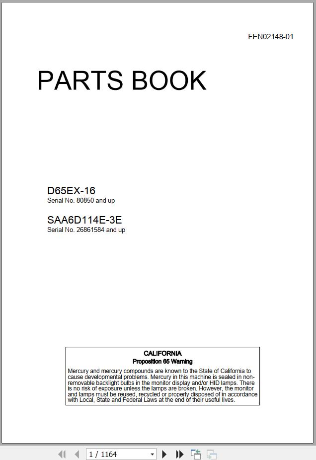 Komatsu D65EX-16 Parts Book FEN02148-01