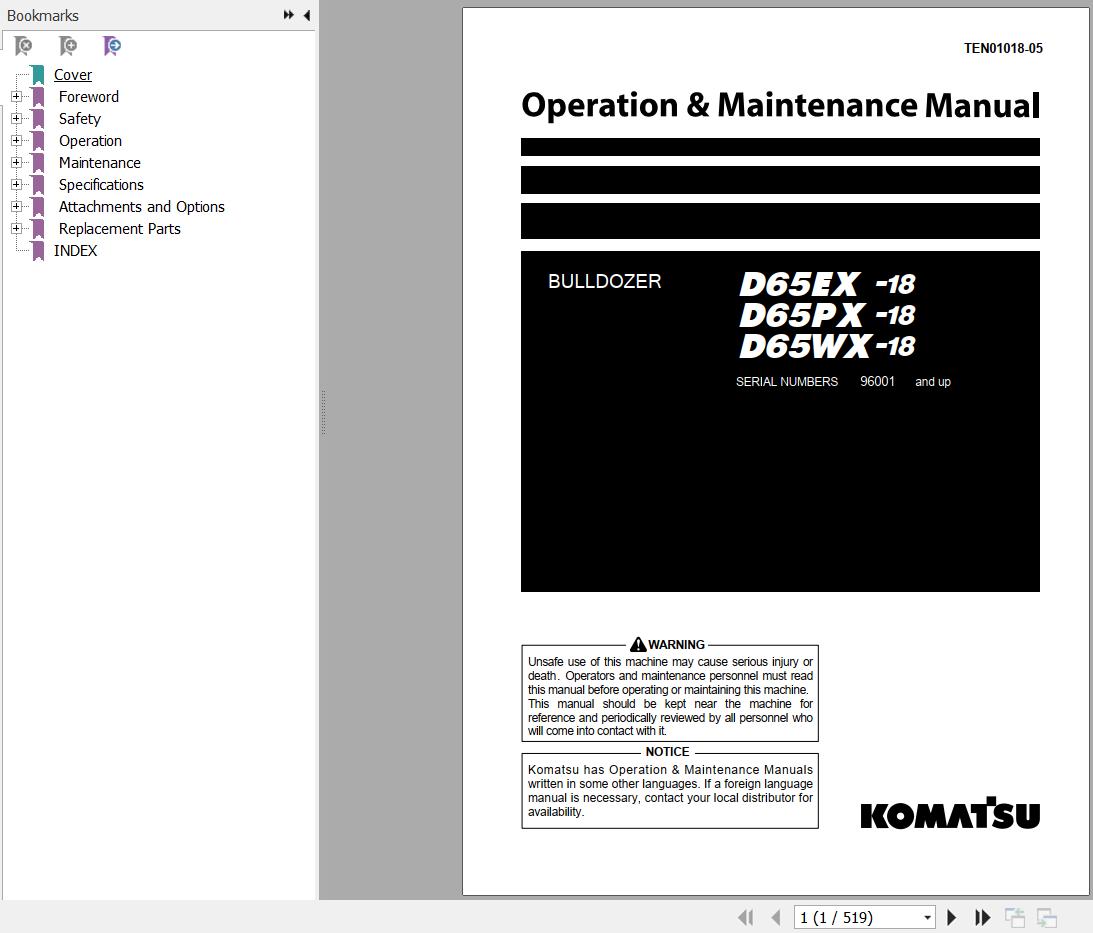 Komatsu D65EX-18 D65PX-18 D65WX-18 Operation & Maintenance Manual TEN01018-05