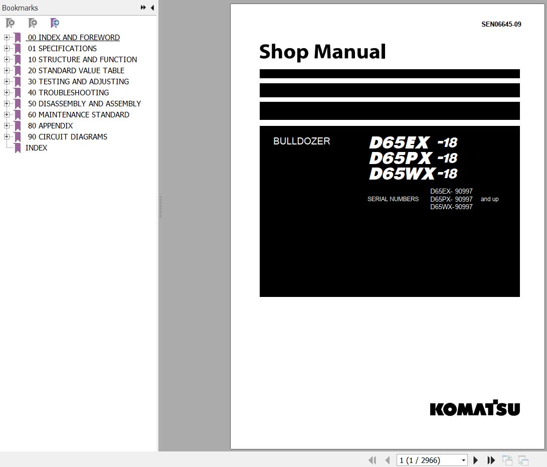 Komatsu D65EX-18 D65PX-18 D65WX-18 Shop Manual SEN06645-09
