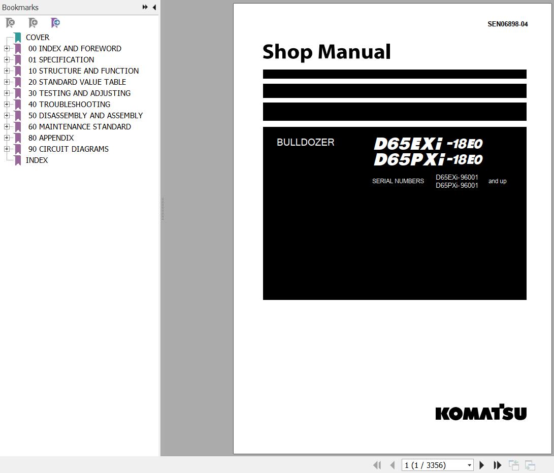The Bookmarks of Komatsu D65EXI-18E0 D65PXI-18E0 Bulldozer Shop Manual: