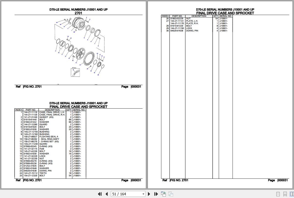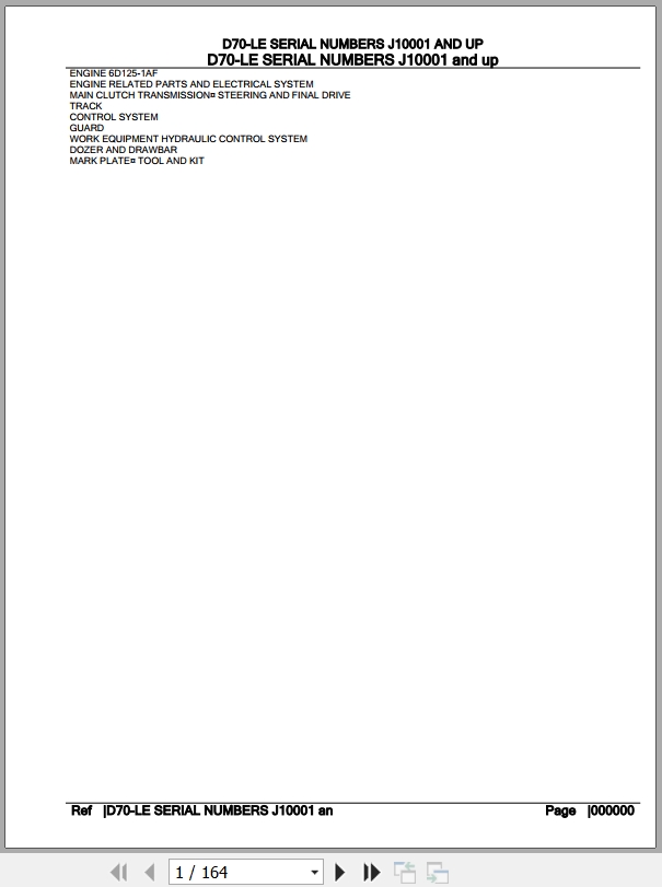 Komatsu D70-LE J10001 And Up Spare Parts Catalog