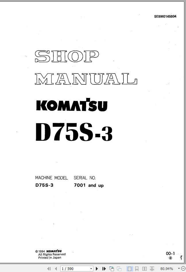 Komatsu D75S-3 Shop Manual SEBM0145B04