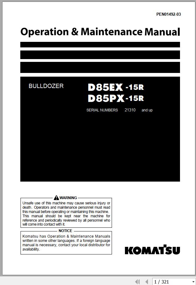 Komatsu D85EX-15R D85PX-15R Operation & Maintenance Manual PEN01492-03