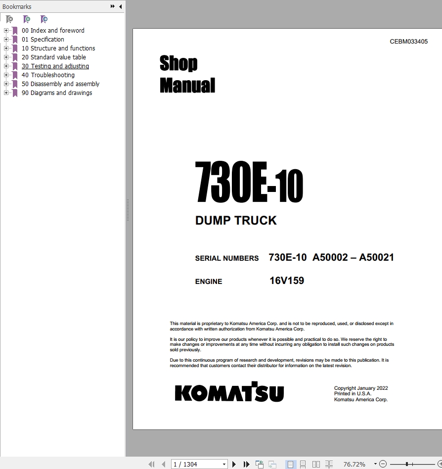 The Bookmarks of Komatsu 730E-10 Dump Truck Shop Manual: