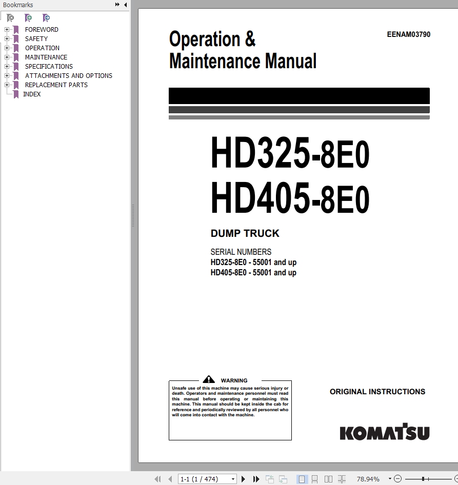 Komatsu HD325-8E0 HD405-8E0 Operation & Maintenance Manual EENAM03790