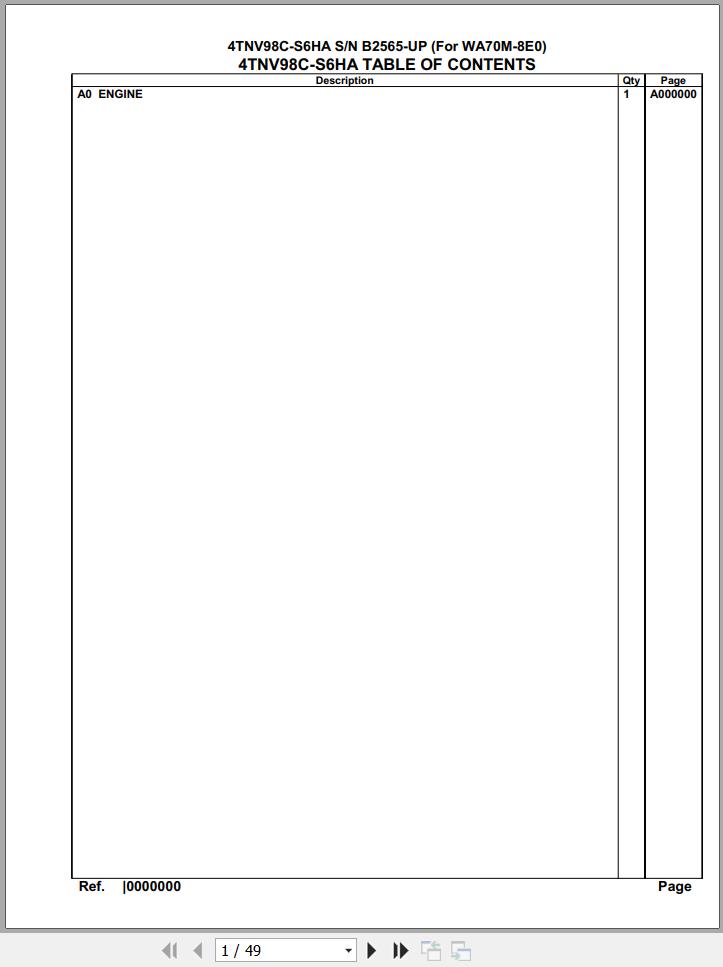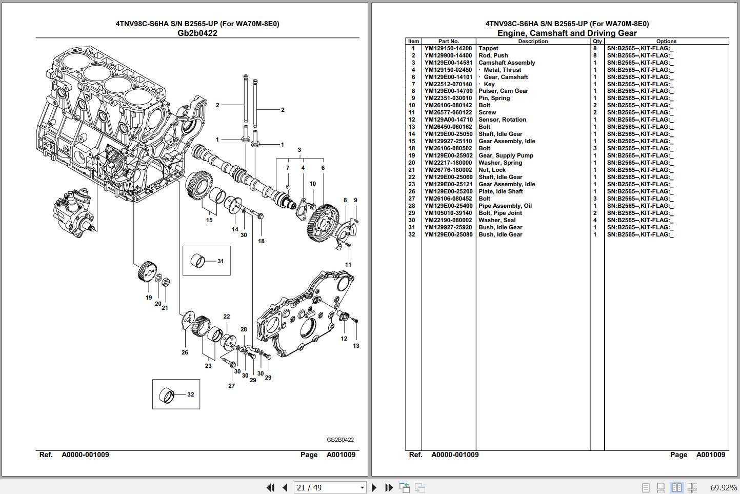 Komatsu Engine 4TNV98C-S6HA B2565 Up For WA70M-8E0 Spare Parts Catalog