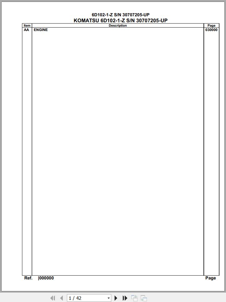 Komatsu Engine 6D102-1-Z 30707205 Up Spare Parts Catalog