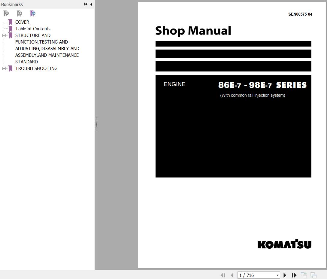 Komatsu Engine 86E-7 98E-7 Series Shop Manual SEN06575-04