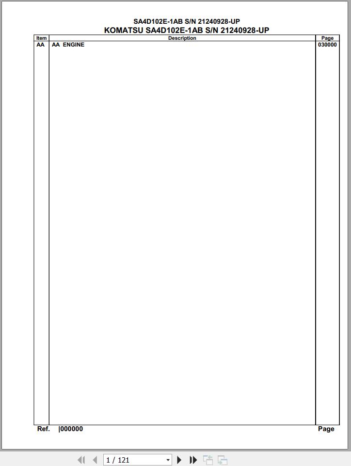Komatsu Engine SA4D102E-1AB 21240928 Up Spare Parts Catalog