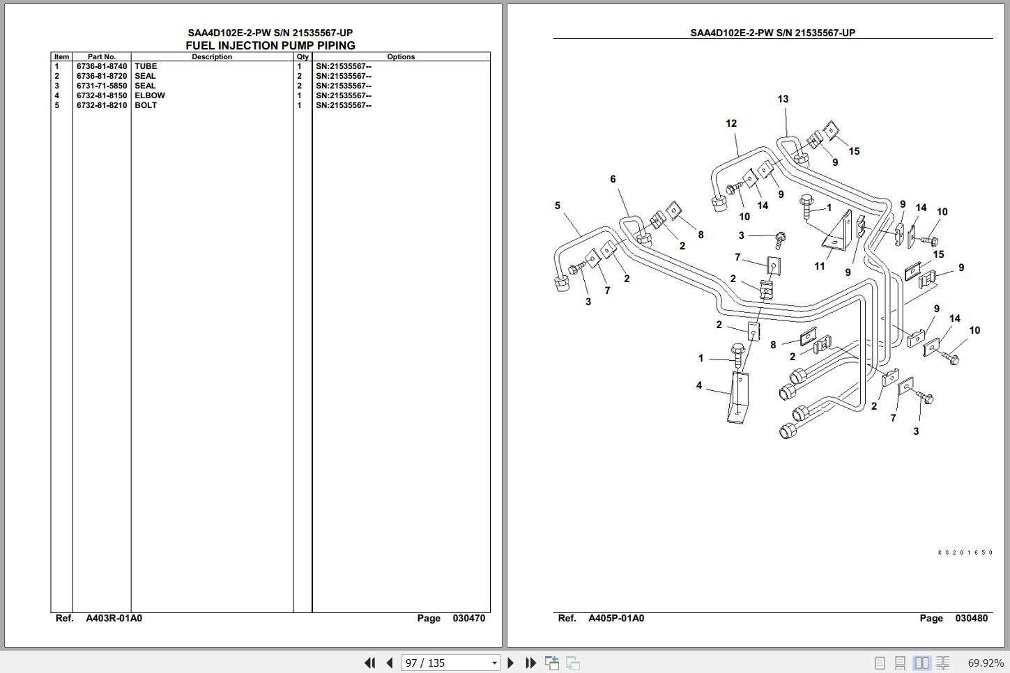Komatsu Engine SAA4D102E-2-PW 21535567 Up Spare Parts Catalog