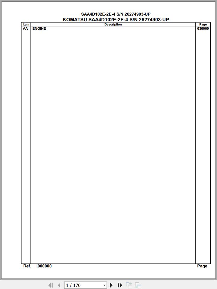 Komatsu Engine SAA4D102E-2E-4 26274903 Up Spare Parts Catalog