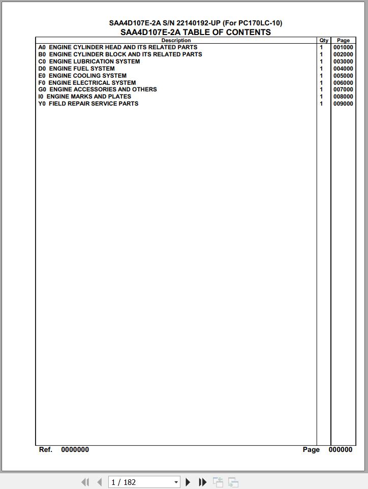The Bookmarks of Komatsu Engine SAA4D107E-2A 22140192 Up For PC170LC-10 Spare Parts Catalog: