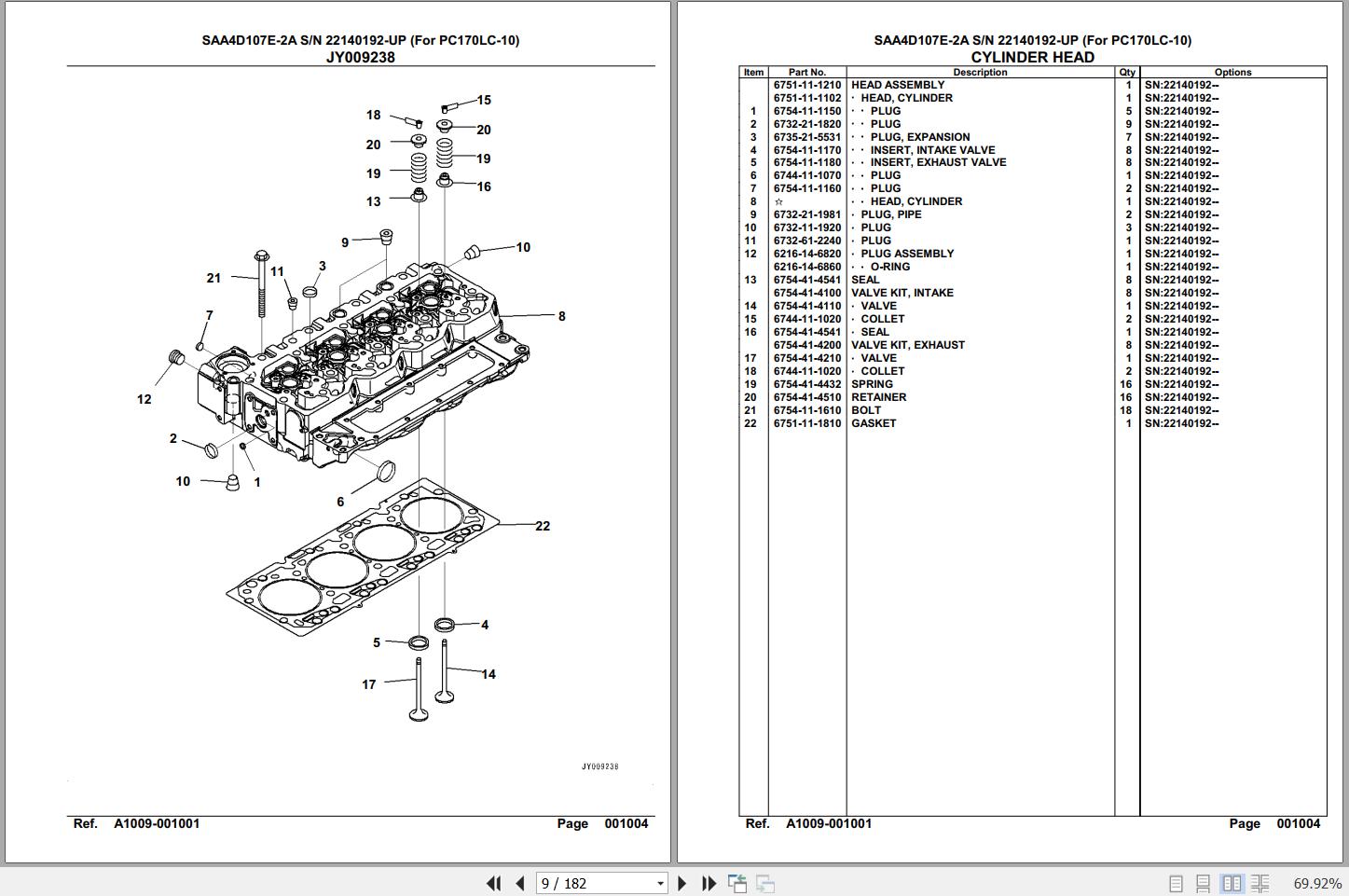 Komatsu Engine SAA4D107E-2A 22140192 Up For PC170LC-10 Spare Parts Catalog