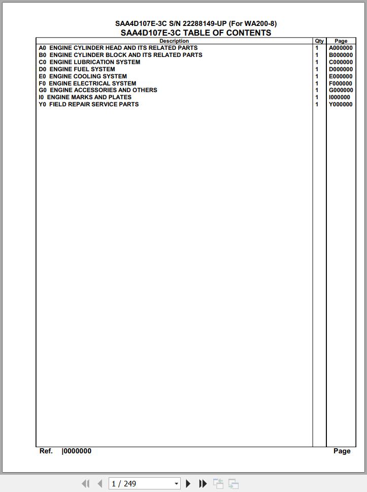 The Bookmarks of Komatsu Engine SAA4D107E-3C 22288149 Up For WA200-8 Spare Parts Catalog: