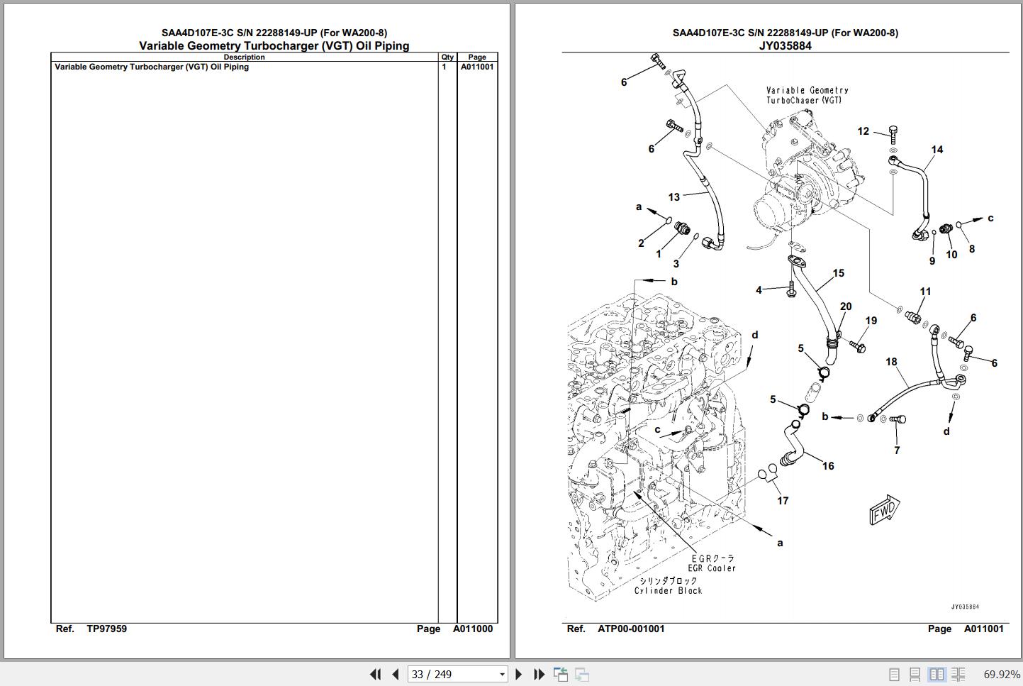 Komatsu Engine SAA4D107E-3C 22288149 Up For WA200-8 Spare Parts Catalog