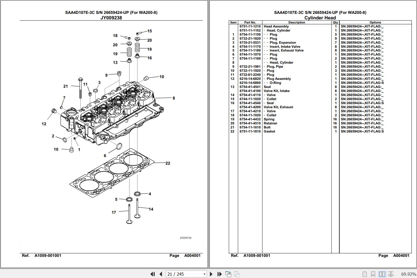 Komatsu Engine SAA4D107E-3C 26659424 Up For WA200-8 Spare Parts Catalog
