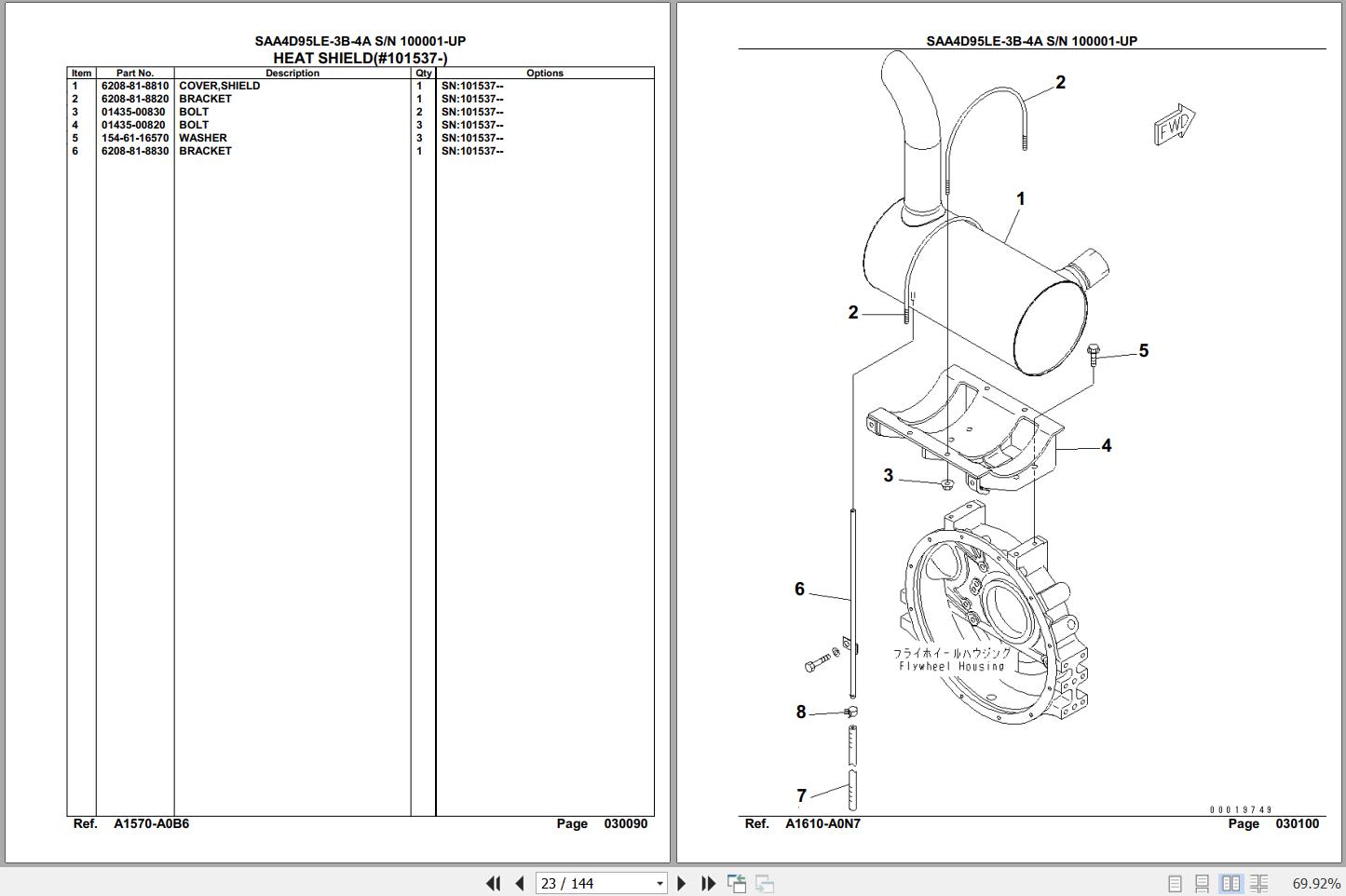 Komatsu Engine SAA4D95LE-3B-4A 100001 Up Spare Parts Catalog