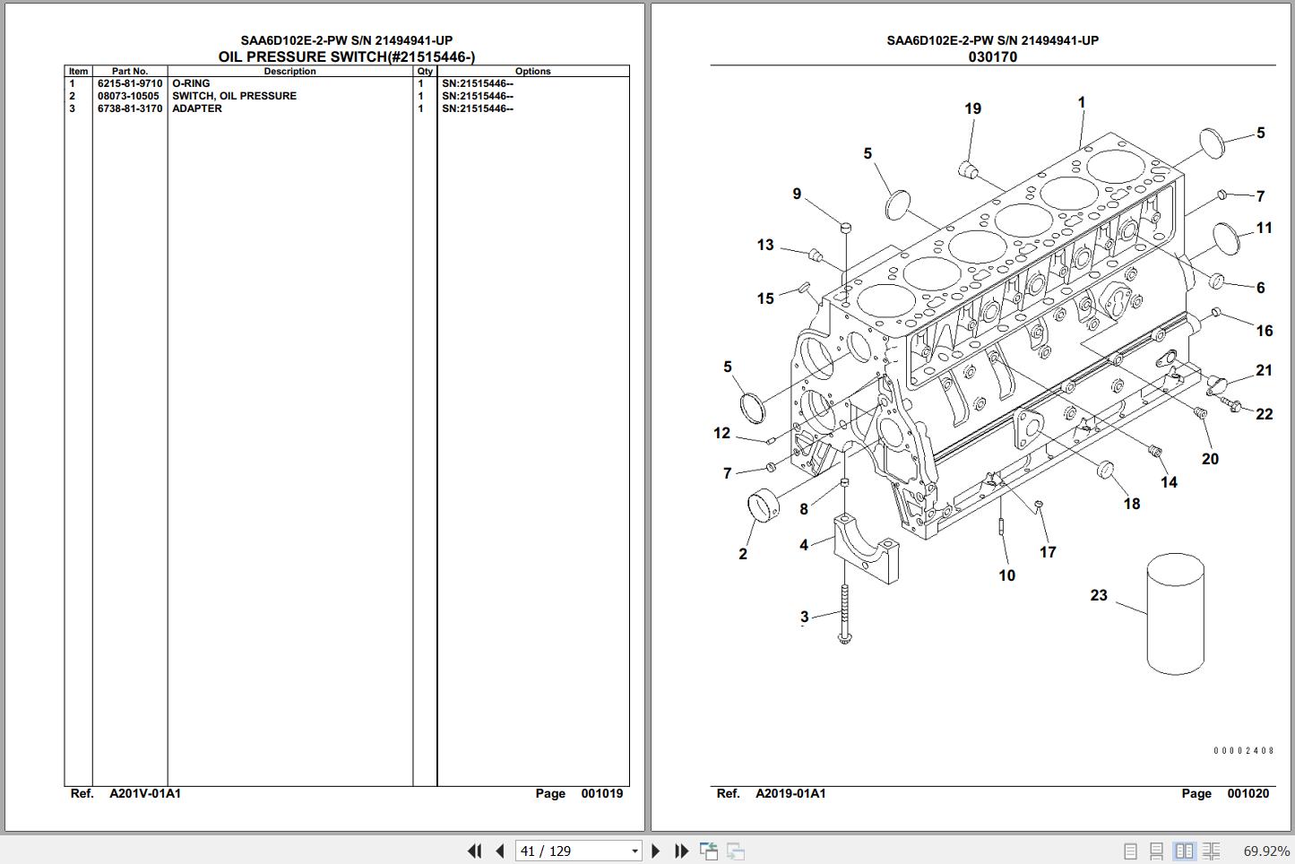 Komatsu Engine SAA6D102E-2-PW 21494941 Up Spare Parts Catalog