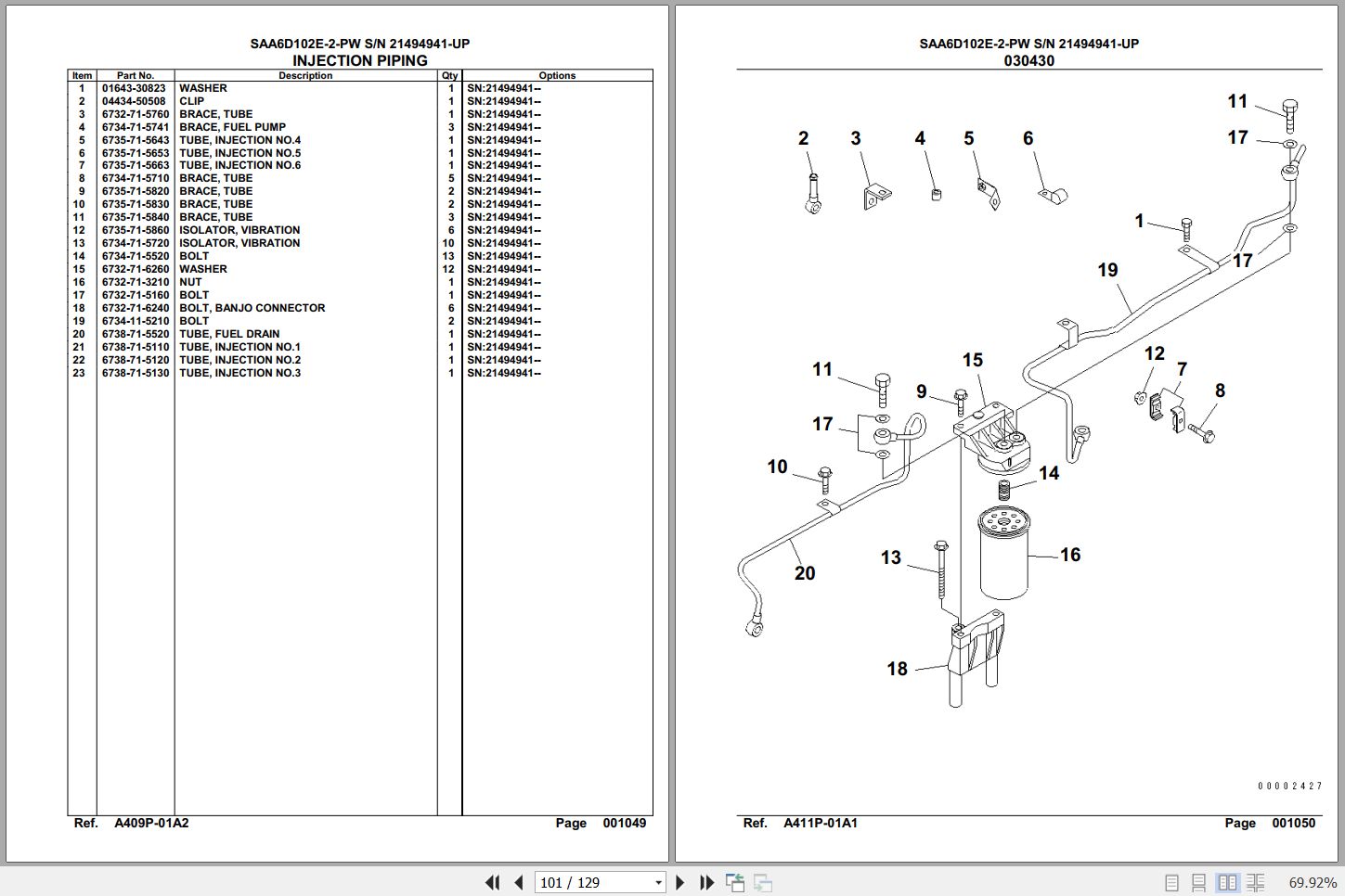 Komatsu Engine SAA6D102E-2-PW 21494941 Up Spare Parts Catalog