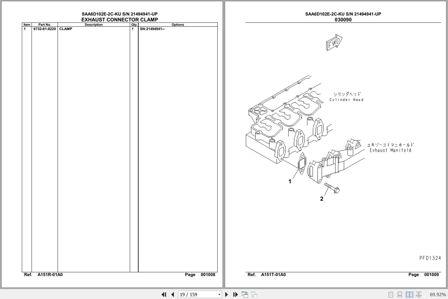 Komatsu Engine SAA6D102E-2C-KU 21494941 Up Spare Parts Catalog