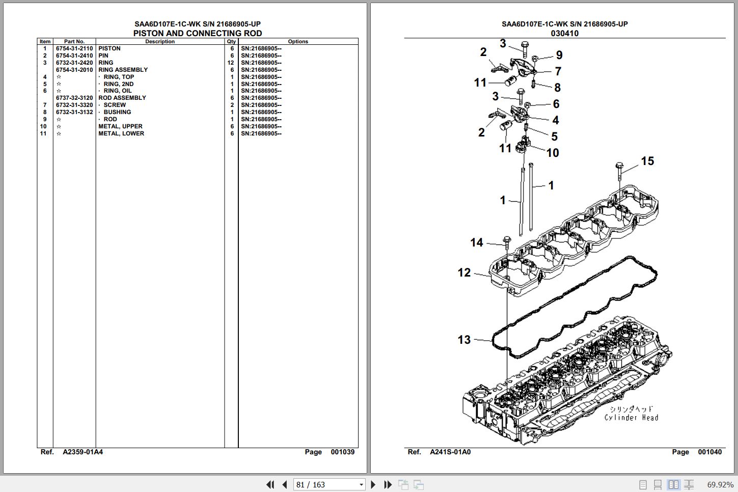 Komatsu Engine SAA6D107E-1C-WK 21686905 Up Spare Parts Catalog