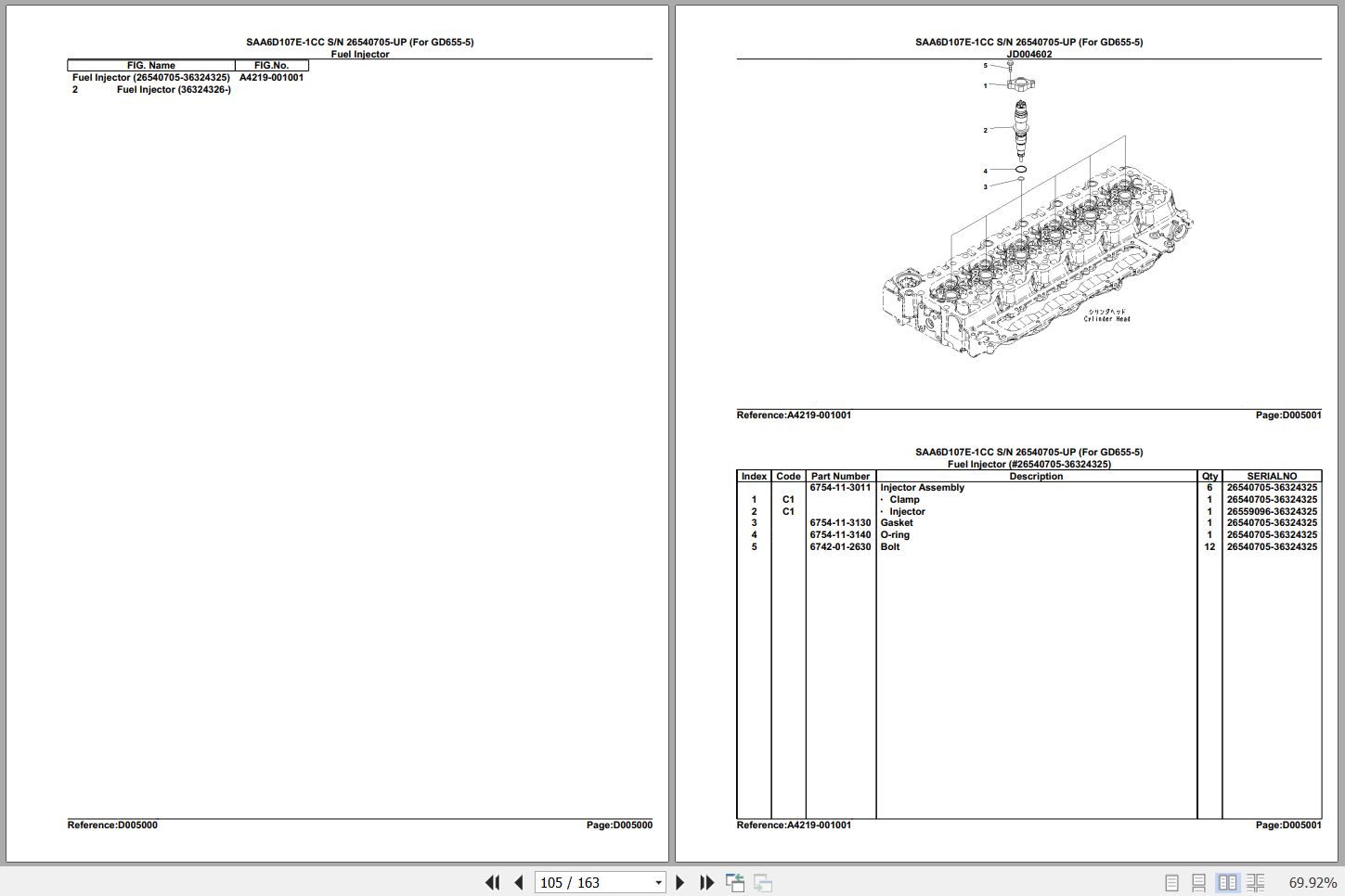 The Bookmarks of Komatsu Engine SAA6D107E-1CC 26540705 Up Spare Parts Catalog: