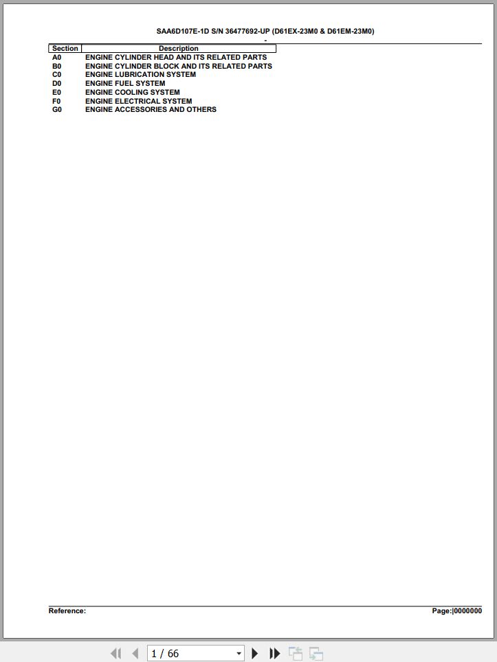 The Bookmarks of Komatsu Engine SAA6D107E-1D 36477692 Up For D61EX 61EM-23M0 Spare Parts Catalog: