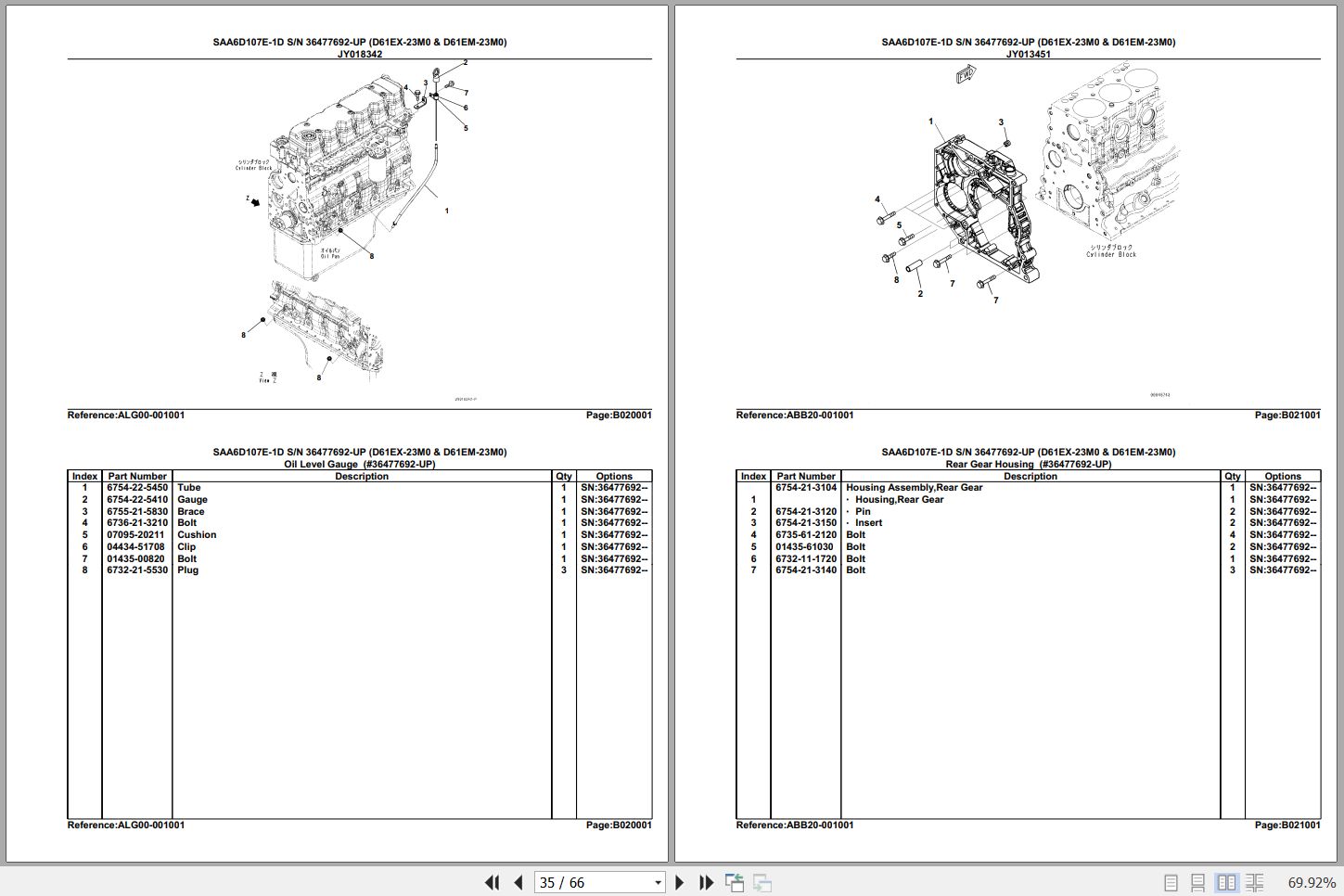 Komatsu Engine SAA6D107E-1D 36477692 Up For D61EX 61EM-23M0 Spare Parts Catalog