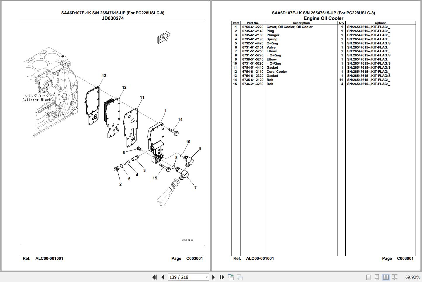 The Bookmarks of Komatsu Engine SAA6D107E-1K 26547615 Up For PC228USLC-8 Spare Parts Catalog: