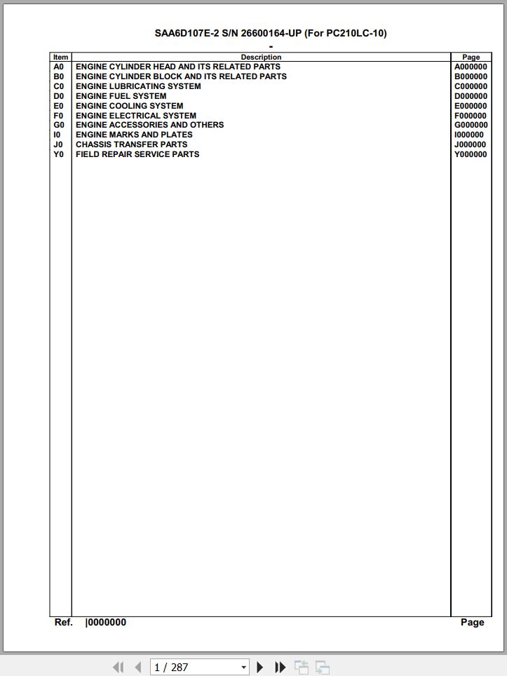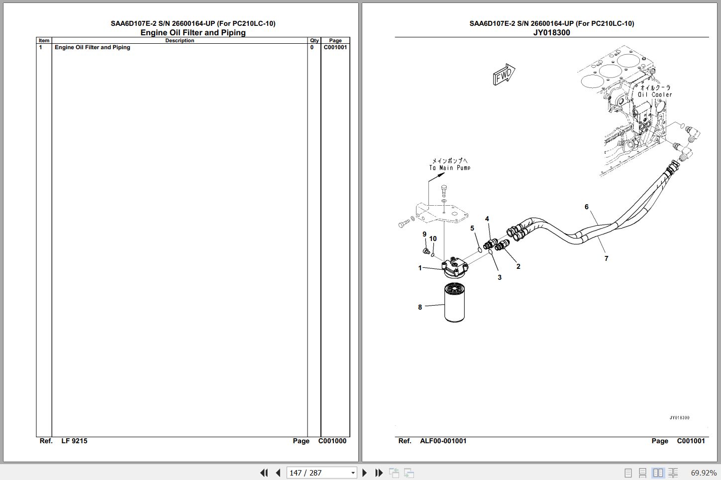The Bookmarks of Komatsu Engine SAA6D107E-2 26600164 Up For PC210LC-10 Spare Parts Catalog: