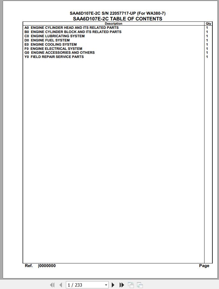 The Bookmarks of Komatsu Engine SAA6D107E-2C 22057717 Up For WA320-7 Spare Parts Catalog: