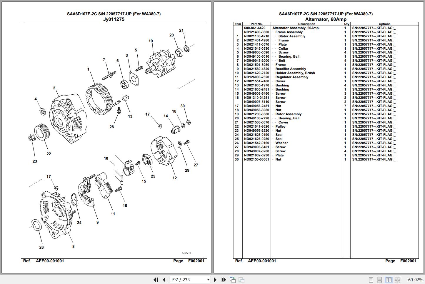 Komatsu Engine SAA6D107E-2C 22057717 Up For WA320-7 Spare Parts Catalog