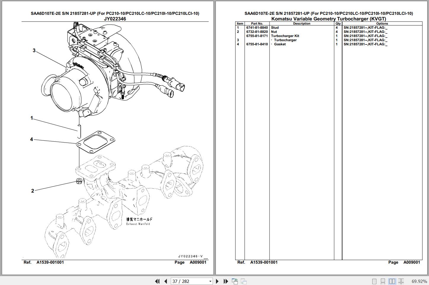 Komatsu Engine SAA6D107E-2E 21857281 Up For PC210 210LC 210I 210LCI-10 Spare Parts Catalog