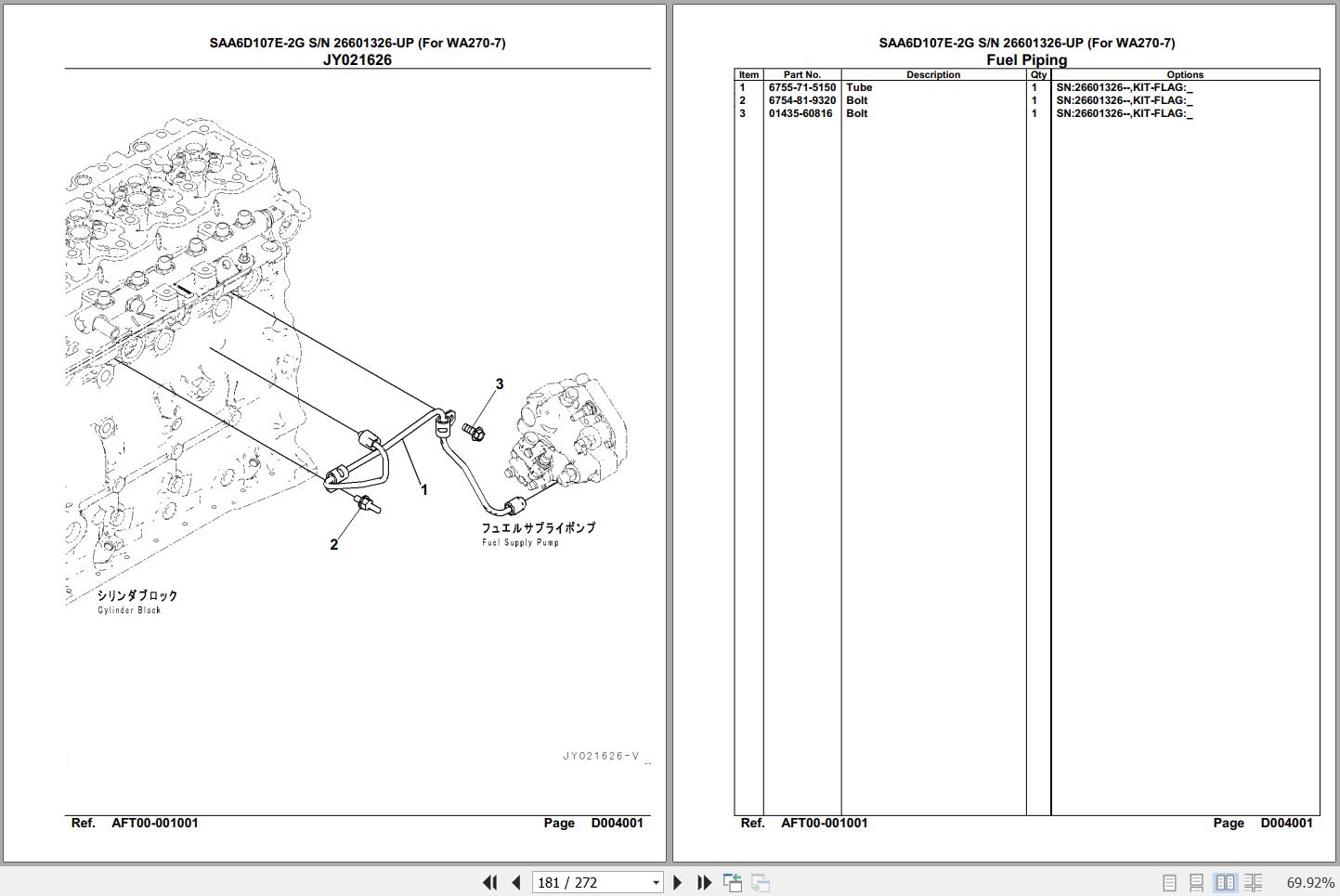 Komatsu Engine SAA6D107E-2G 26601326 Up For WA270-7 Spare Parts Catalog