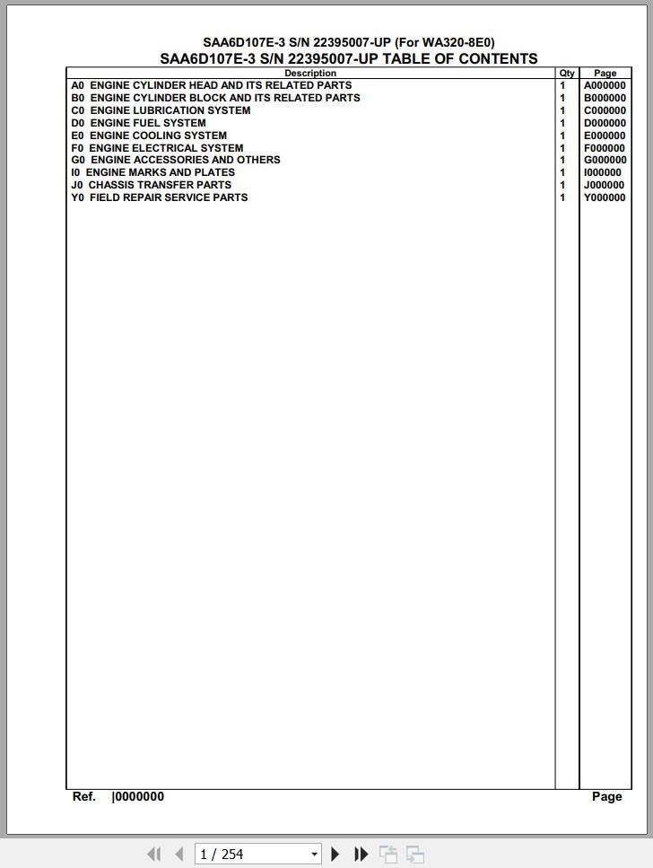 The Bookmarks of Komatsu Engine SAA6D107E-3 22395007 Up For WA320-8E0 Spare Parts Catalog:
